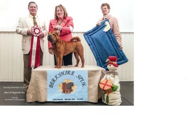 We show and breed Chinese Shar-Pei selectively for AKC/UKC conformation shows as well as companion pet homes. The hips-OFA tests are done along with CERF the eyes, patellas, elbows and thyroid tests to the breeding pair.
